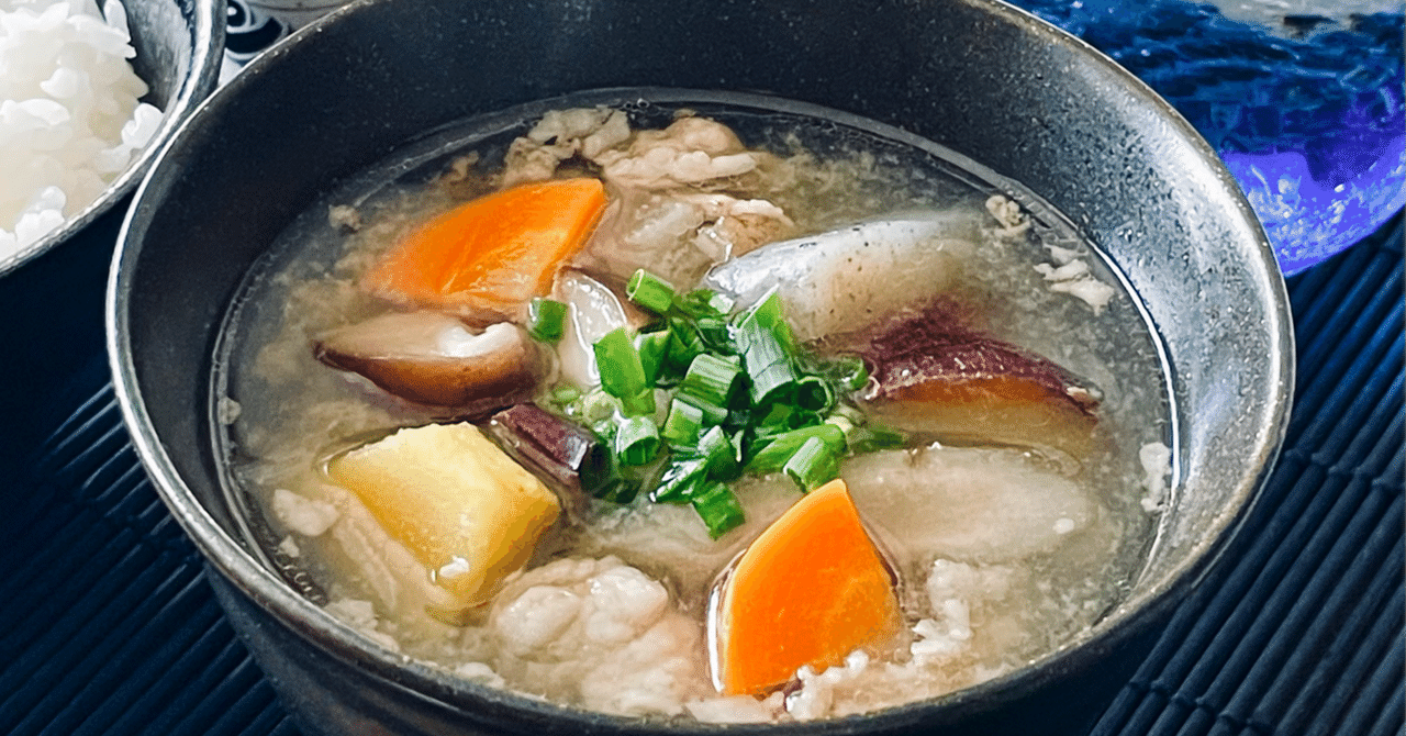 豚汁にさつまいもが入ったかんじ。