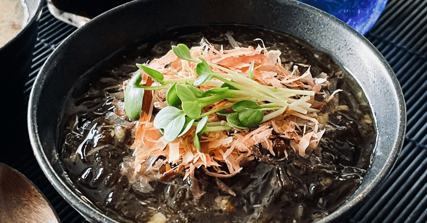 ツーンとしたわさびともずくのツルッとした食感で、