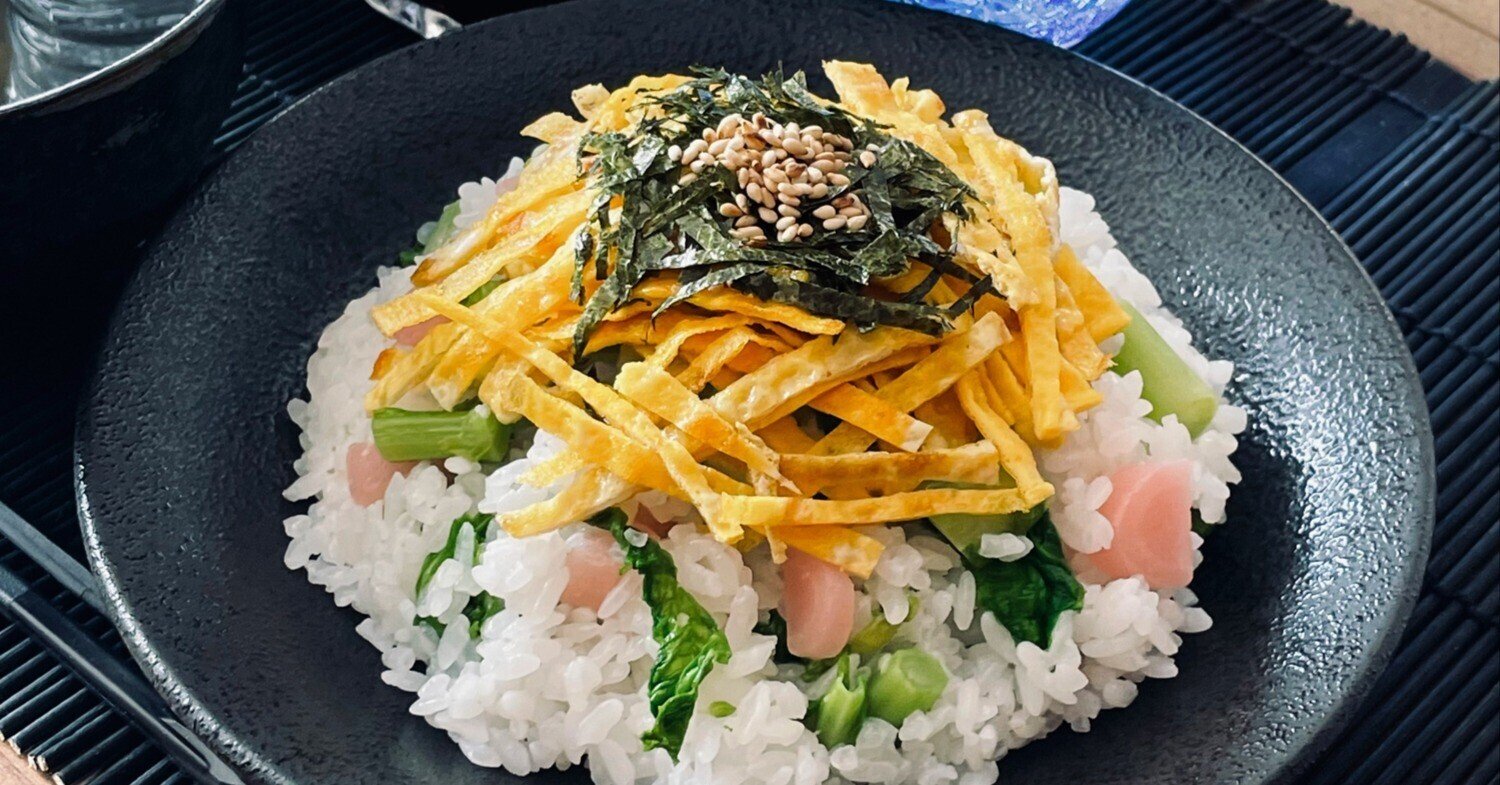 菜の花新生姜を混ぜて、簡易的なちらし寿司に!