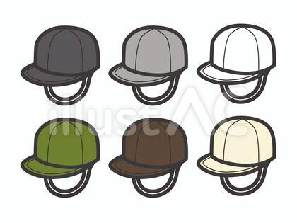 園生活や学校生活に欠かせない、日除け付きのカラー帽子を6色セットでイラストにしました。