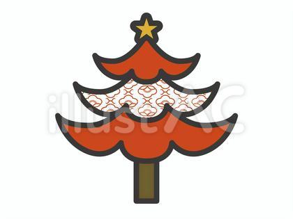 ちょっぴり和風なクリスマスツリー01イラスト
