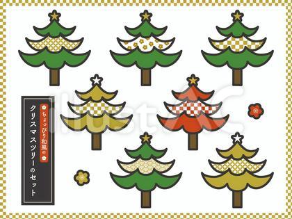 ちょっぴり和風なクリスマスツリーのセットイラスト