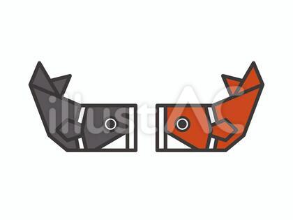 黒色と赤色の折り紙で作られた鯉のぼりが向かい合っているイラスト simple_illustration