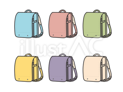 オリジナルのフリー素材『ランドセル6色セット02イラスト』