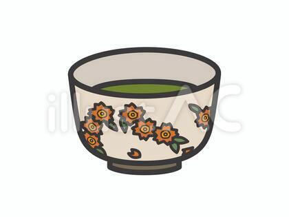 オリジナルのフリー素材『抹茶碗(花柄・薄茶入り)01イラスト』