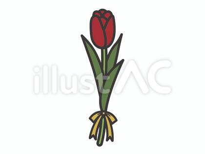 リボンをあしらったチューリップ一輪のイラスト素材を、イラストACに掲載しています。