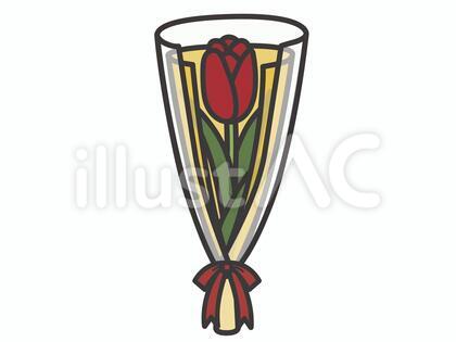 チューリップ(一輪ブーケ・二重包み)02イラスト